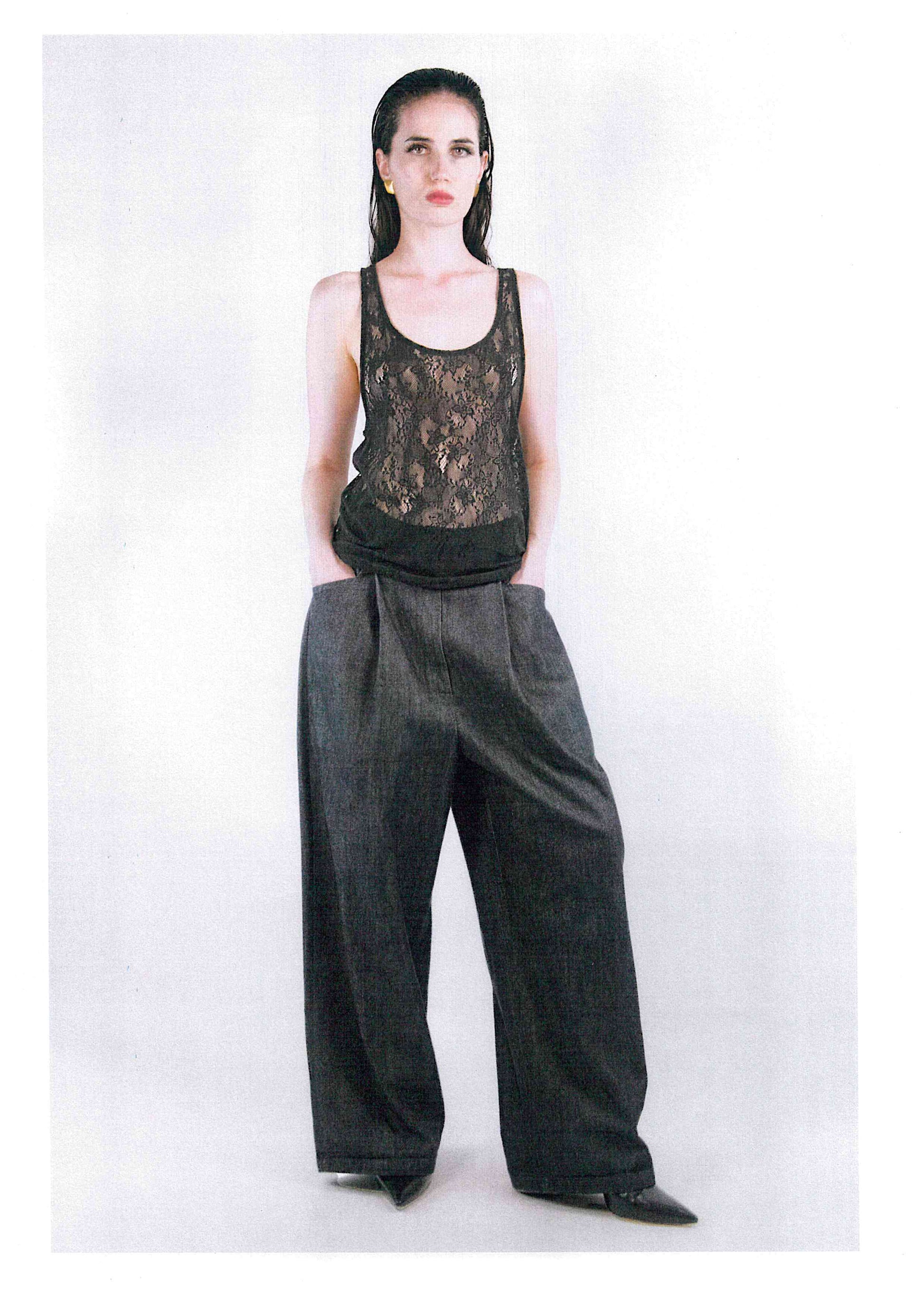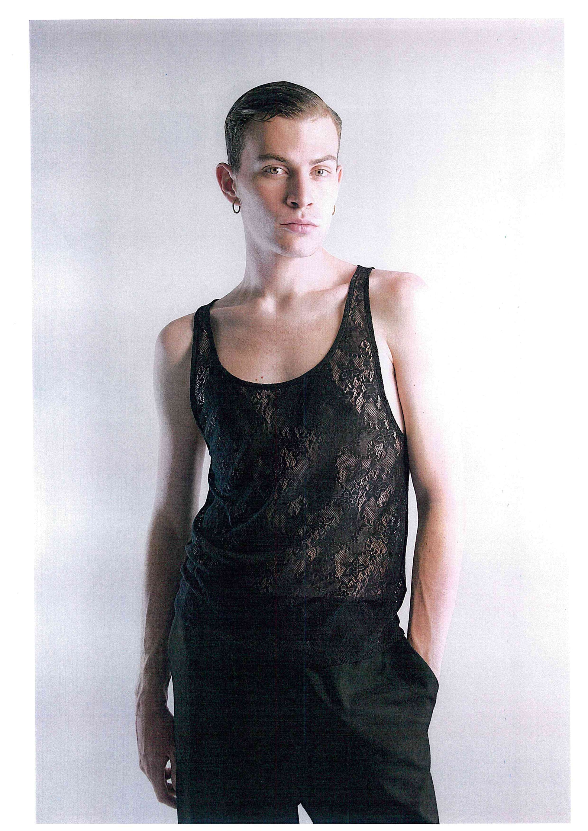 The Tank top in black lace is a genderless piece that blurs the line between day and night with effortless sensuality.